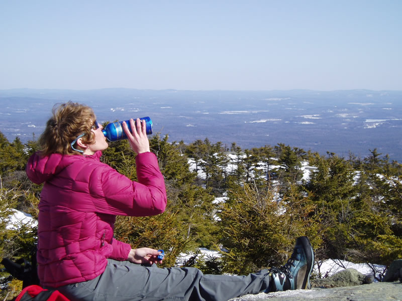 2009 Mt Kearsarge NH Hike: Joan Drinking Summit Kearsarge